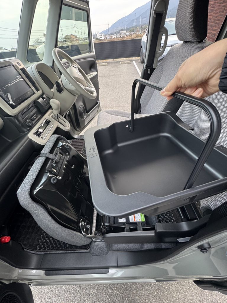 さらにパーソナルテーブルも付いていて、ドライブ中のちょっとした飲み物や小物も置きやすく、とても便利な一台です😊